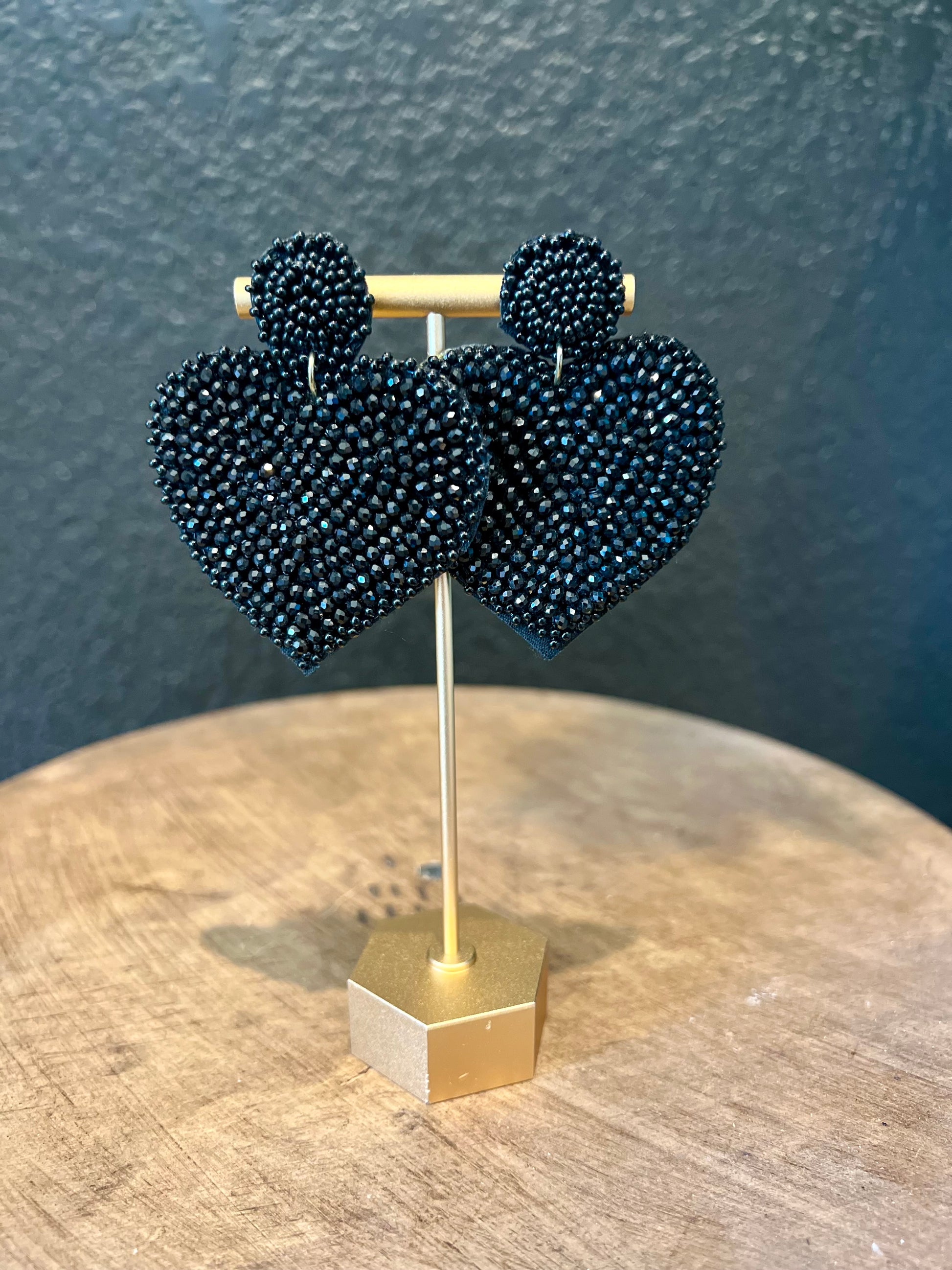 Beaded Black Heart Earrings