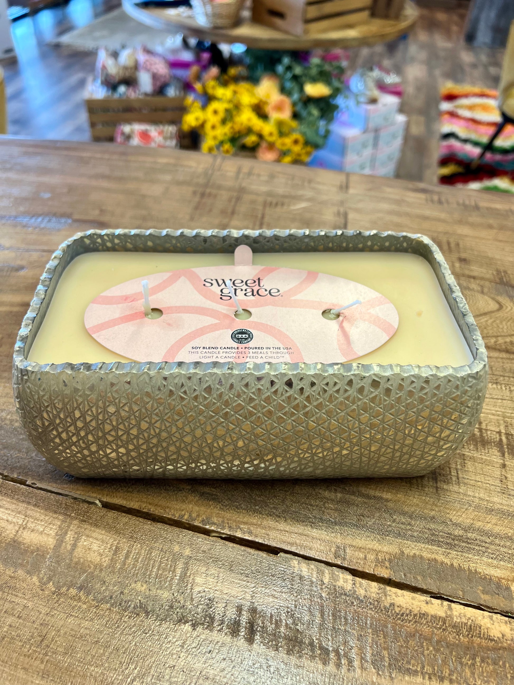 Large Sweet Grace Gold Rectangle Triple Wick Candle